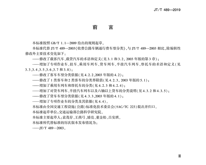 交通運輸行業(yè)標(biāo)準(zhǔn)《收費公路車輛通行費車型分類》 JT/T 489-2019