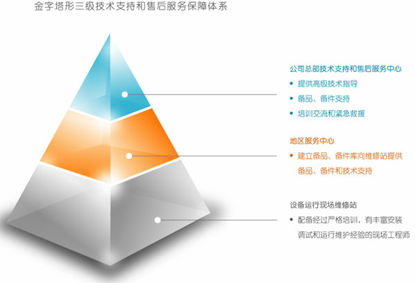 滿足客戶要求,并提供全面的技術(shù)支持和服務(wù),是公司服務(wù)的宗旨。公司根據(jù)實(shí)際情況,建立起金字塔形的三級(jí)技術(shù)支持和售后服務(wù)保障體系。為保證設(shè)備良好運(yùn)行提供最大程度的便利。
